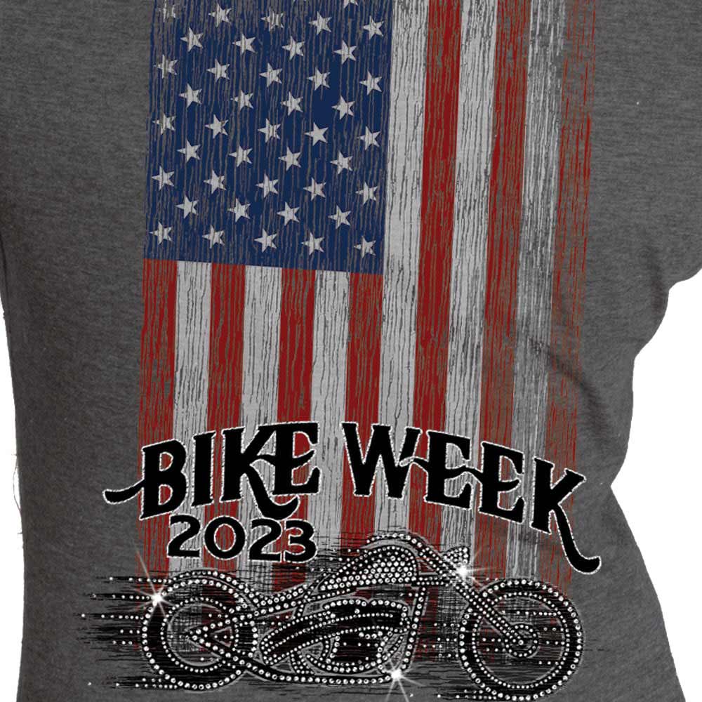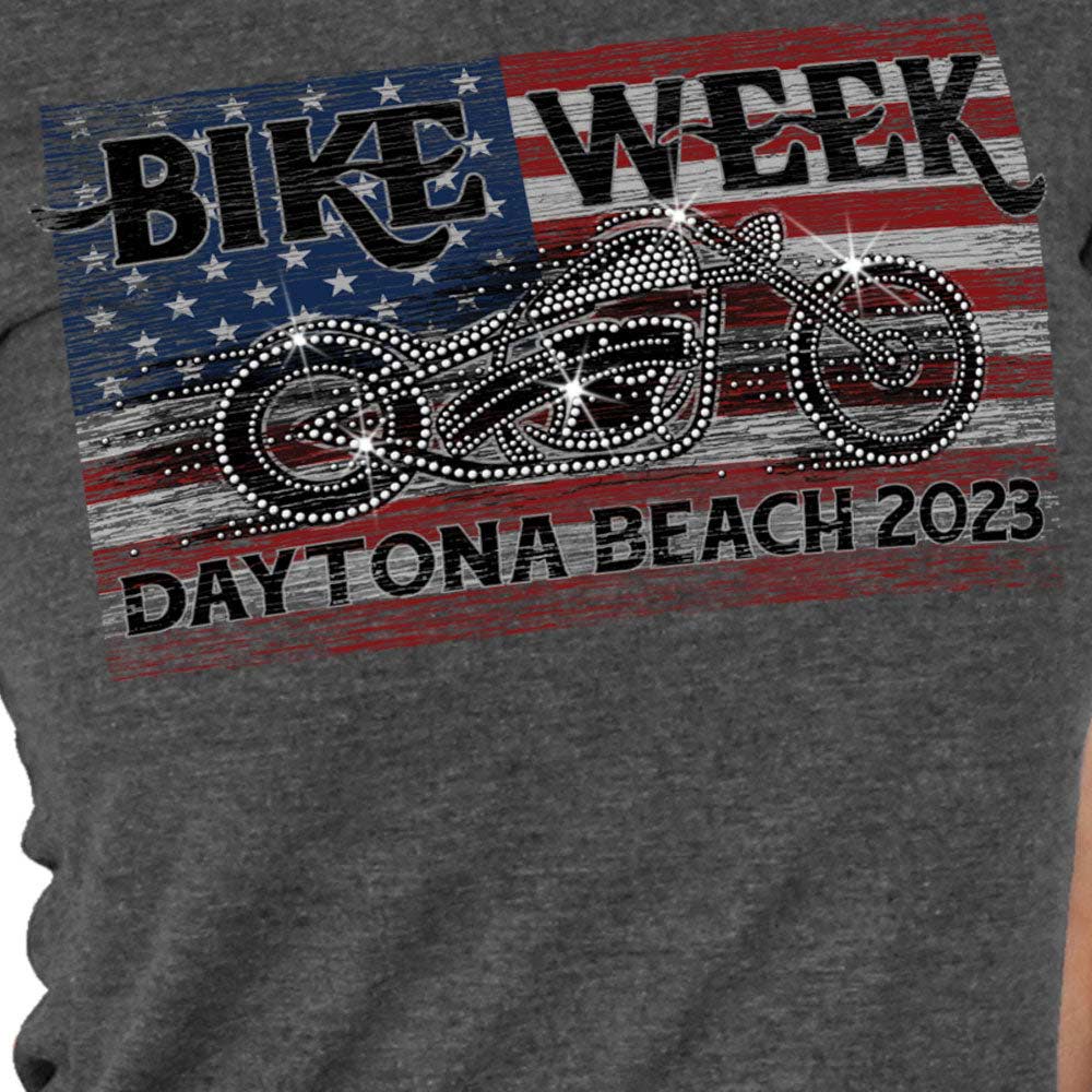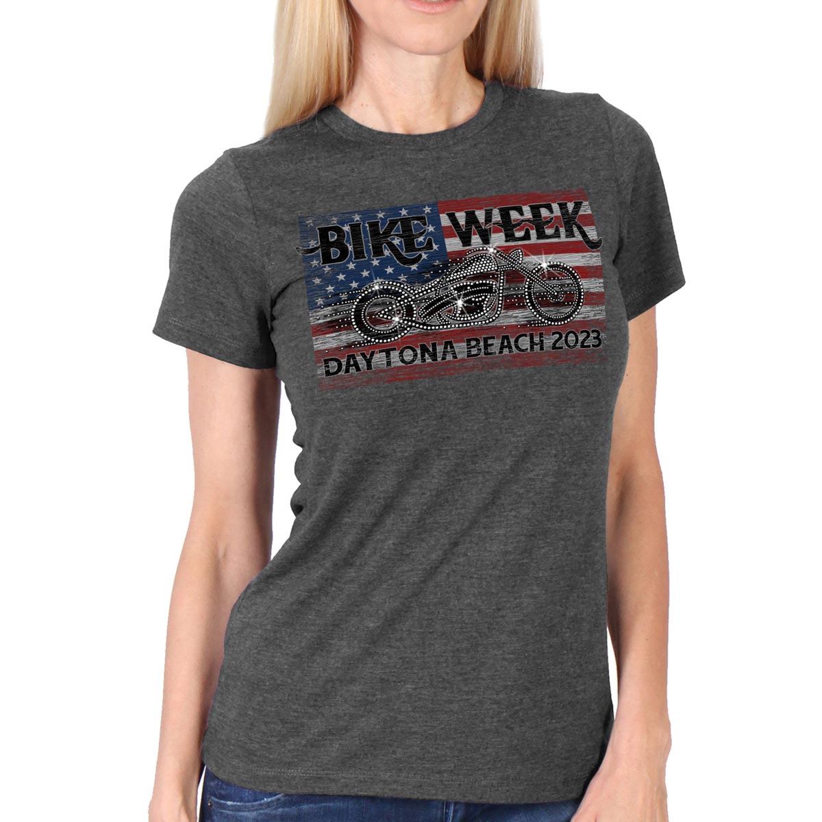 Hot Leathers EDL1063 Women's 2023 Daytona Bike Week Bling Bike Grey T-Shirt