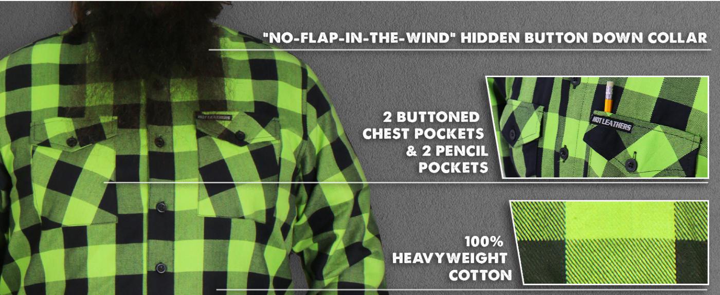 Hot Leathers GMS3492 Men’s Black and Green Shredder Skull Sleeveless Flannel Shirt