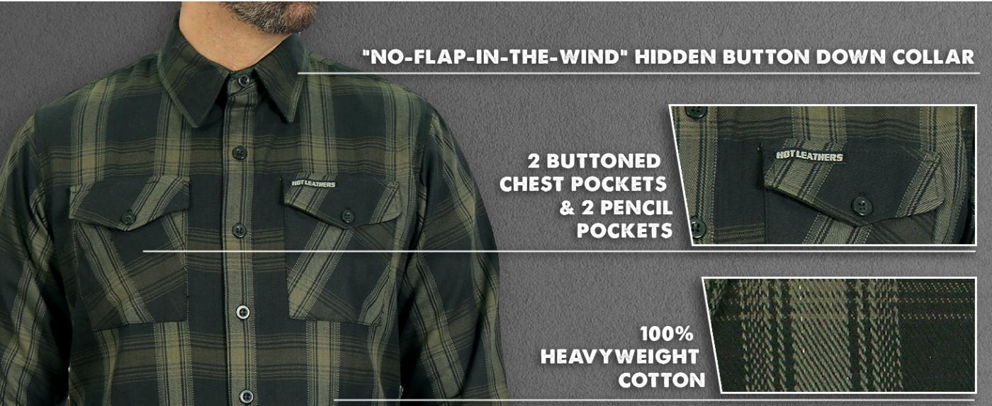 Hot Leathers GMS3492 Men’s Black and Green Shredder Skull Sleeveless Flannel Shirt