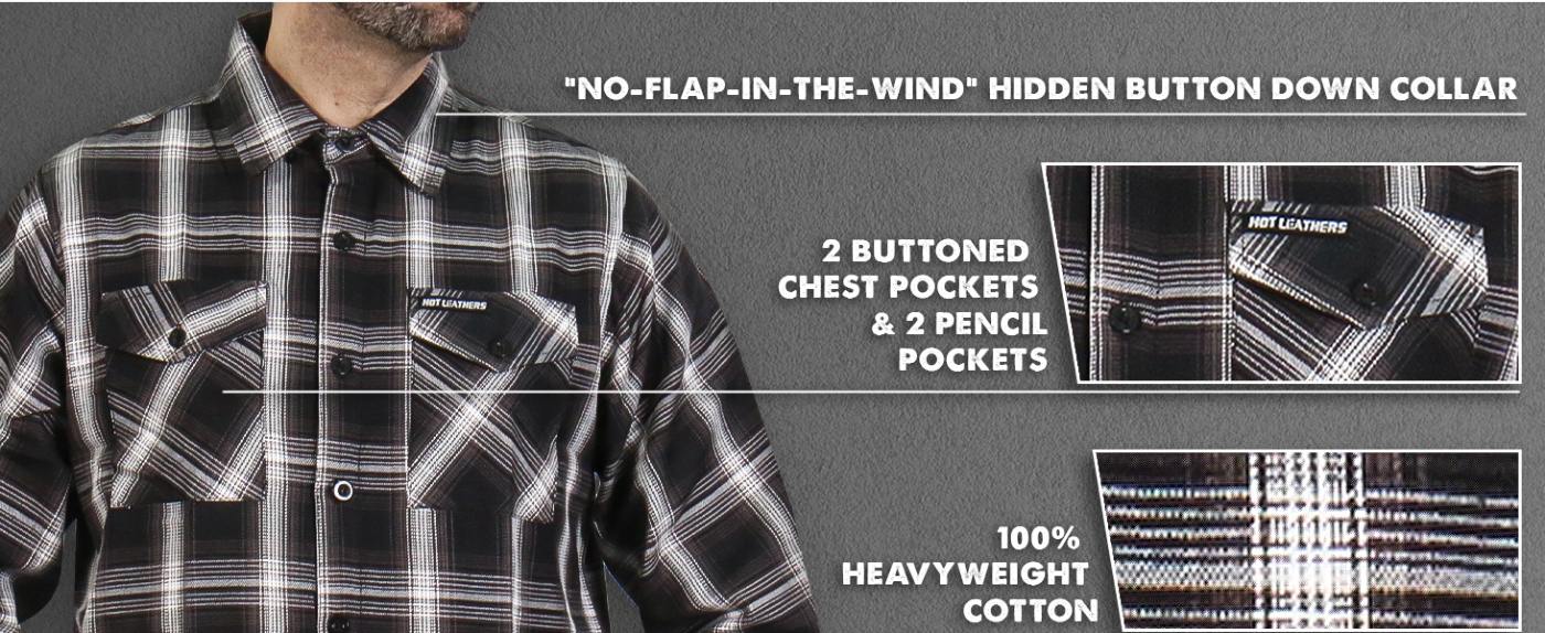Hot Leathers FLM2023 Men's 'White and Black' Flannel Long Sleeve Shirt
