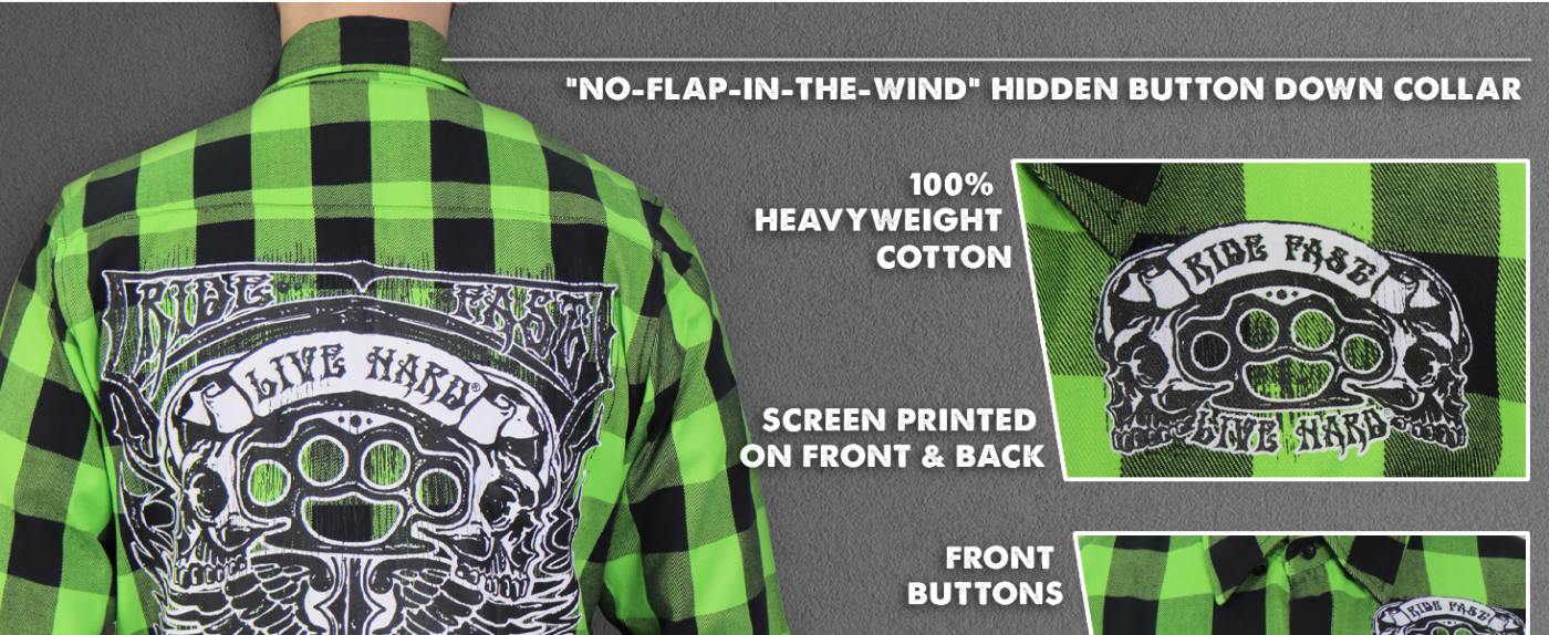 Hot Leathers All New Everyday Riding Flannel. This Flannel Is Built Out of Heavyweight 100% Cotton with A Button Up Front and Button Sleeve Cuffs. There Are Dual Chest Button Down Pockets and a Hidden Button-Down Collar. 100% Cotton Construction Gives It Extra Durability for Work or Play.