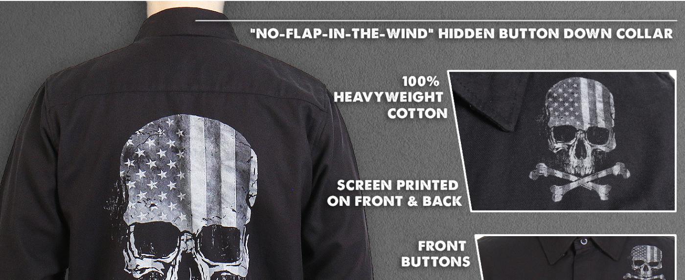 davis fleming Hot Leathers FLM2113 Men's 'Black Flag Skull' Long Sleeve Flannel Shirt