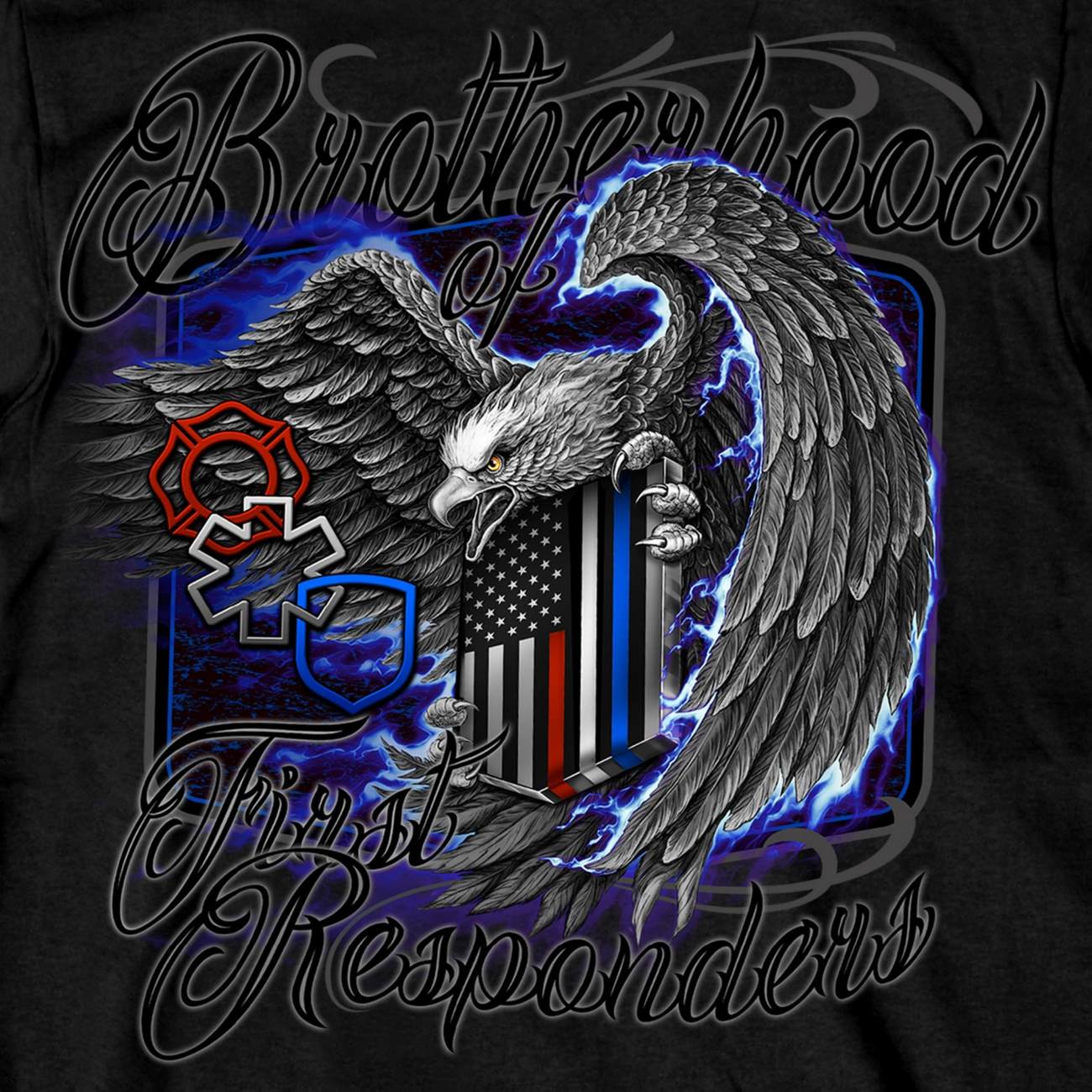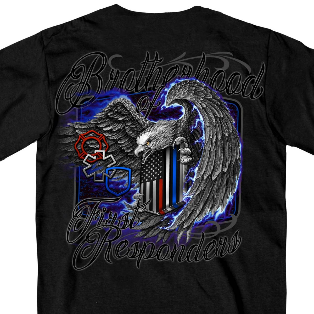 Hot Leathers GMD1451 Men's 'Brotherhood of First Responders Eagle' Black T-Shirt