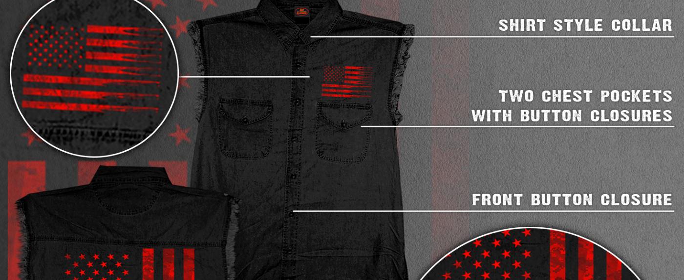 Hot Leathers GMS3492 Men’s Black and Green Shredder Skull Sleeveless Flannel Shirt