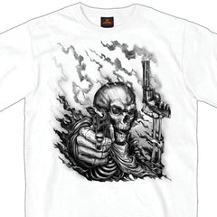 Hot Leathers GMS1417 Men’s ‘Smoking Guns Skeleton ‘ Short Sleeve White T-Shirt