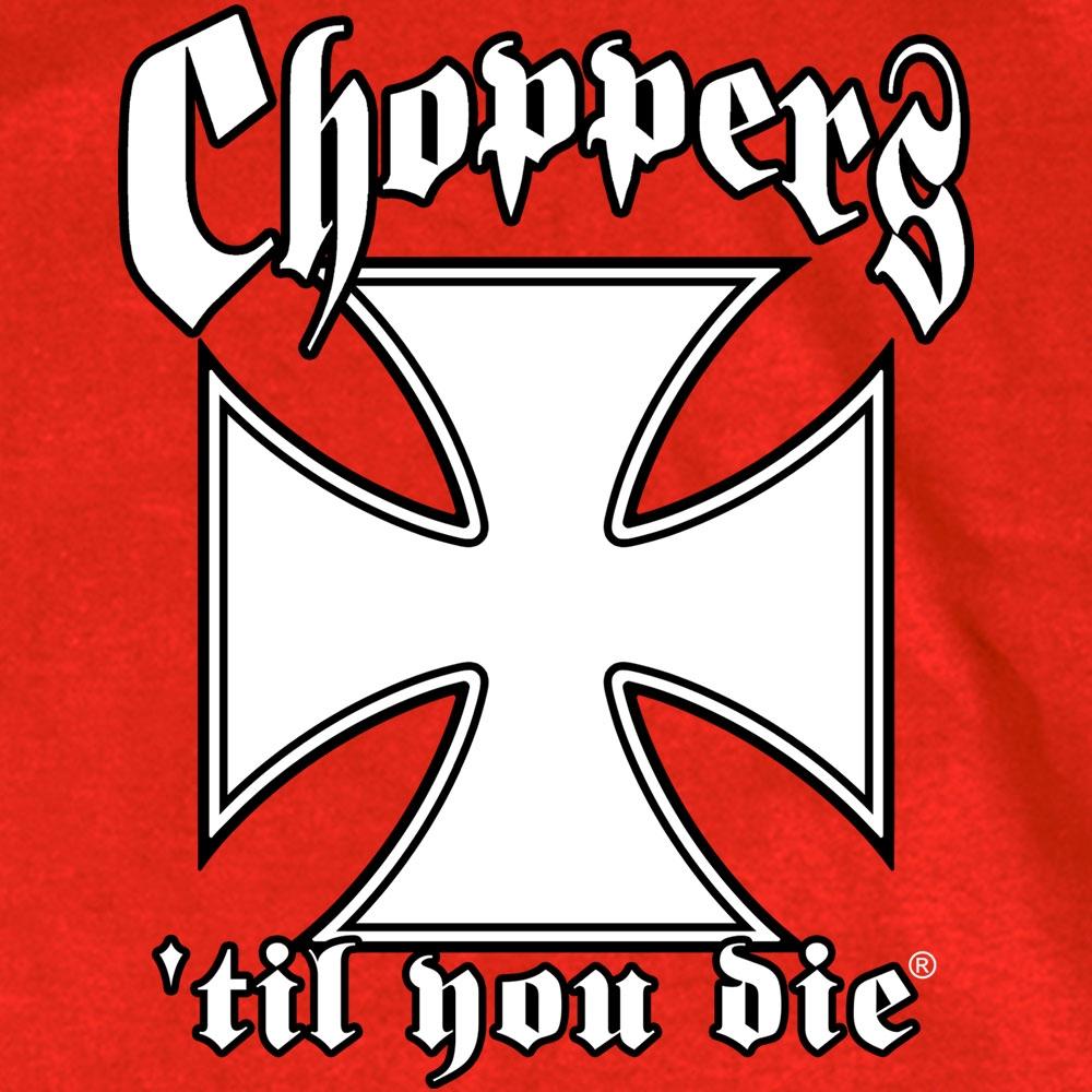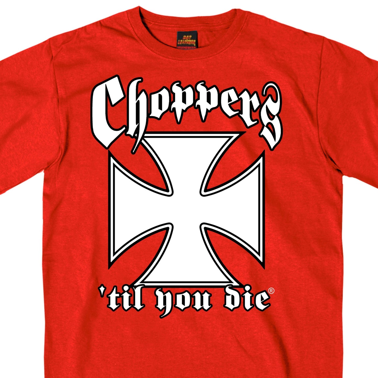 This Hot Leathers® official red t-shirt is screen printed with "CHOPPER'S 'TIL YOU DIE" across the chest area.Get yours today!