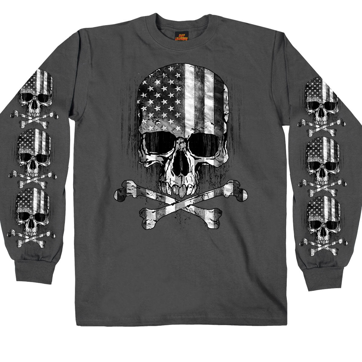 Hot Leathers GMS2391 Men’s ‘Flag Skull’ Long Sleeve Charcoal T-Shirt
