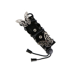 Silver metal butterfly medallions on adjustable lace with silver metal snaps. The Hair Glove
