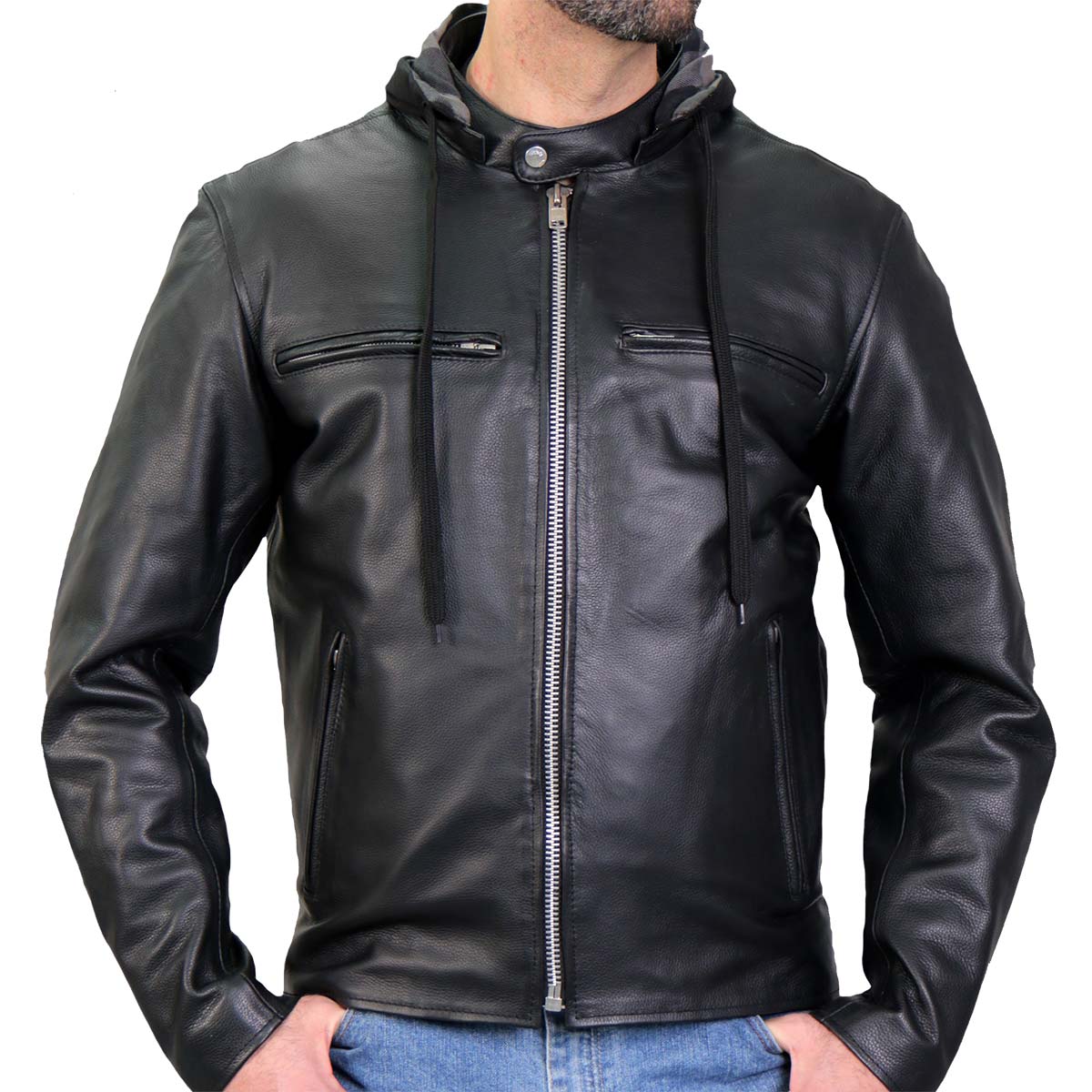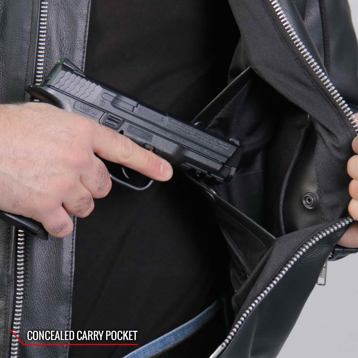Hot Leathers JKM1030 Men’s Black ‘Carry and Conceal’ Leather Jacket with Flannel Lined Hood