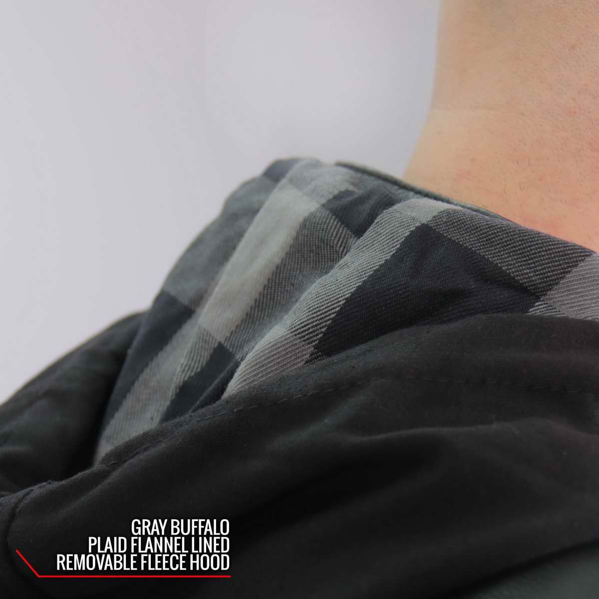 • Double Layer Grey Flannel/Fleece Snap-On Hoodie