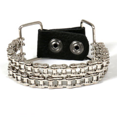 A biker accessory designed for the rider with their own style. An 9.5" stainless steel double bike chain attached to a black leather strap with a silver snap closure. Add some attitude to your biker image with the Hot Leathers Double Bike Chain Bracelet!