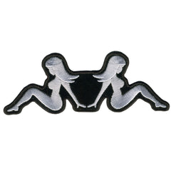 Silver Mudflap Chicks Embroidered Patch is Heat-Heat sealed backing for easy iron-on application.
