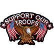 Support Our Troops American Eagle with American flags embroidered patch with a heat sealed backing for easy application.