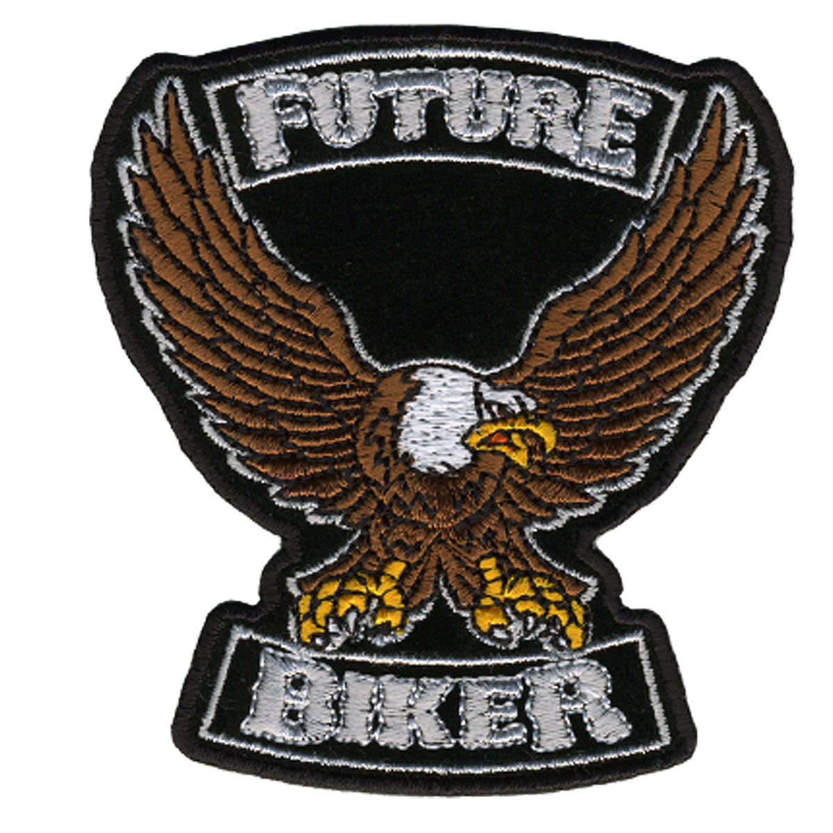Kids "Future Biker" Embroidered Eagle Patch. Heat-sealed backing for easy iron-on application.