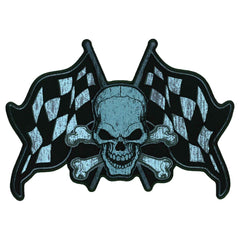 Hot Leathers Skull and Checkered Flags 11" Patch PPQ1829