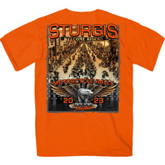 Hot Leathers SPB1083 Men’s Orange Sturgis 2023 Main Street T-Shirt