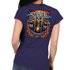 Hot Leathers SPL1825 Women's Navy Blue 2023 Sturgis # 1 American Lady Double Sided T-Shirt