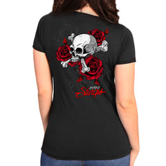 Hot Leathers SPL1856 Women's Black 2023 Sturgis Rally Skull Rose T-Shirt