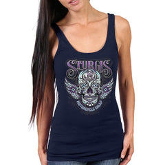 Hot Leathers SPL2860 Women's Navy 2023 Sturgis Antique Sugar Skull Tank Top Shirt