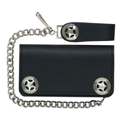 The Hot Leathers WLA2017 Leather Bifold Wallet is perfect for those who want a professional, timeless look. Measuring 6" wide, this premium leather wallet is equipped with a detachable chain & Western Star Snap Closure for added security. With high-end style and reliable quality, you can trust this wallet to keep your valuables safe.
