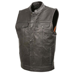 Men’s SOA Black Premium Buffalo Leather Club Style Vest with Patch Access and Concealed Carry Pocket BZ6010