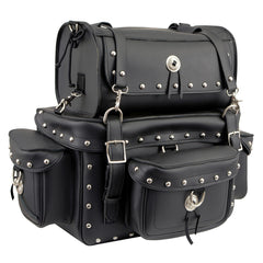 Milwaukee Leather MP8100S Large Black PVC 2-Piece Studded Motorcycle Touring Pack Sissy Bar Bag