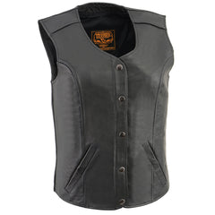 Milwaukee Leather LKL4701 Women's Black Premium Leather Motorcycle Rider Vest w/ Classic 4-Snap Closure
