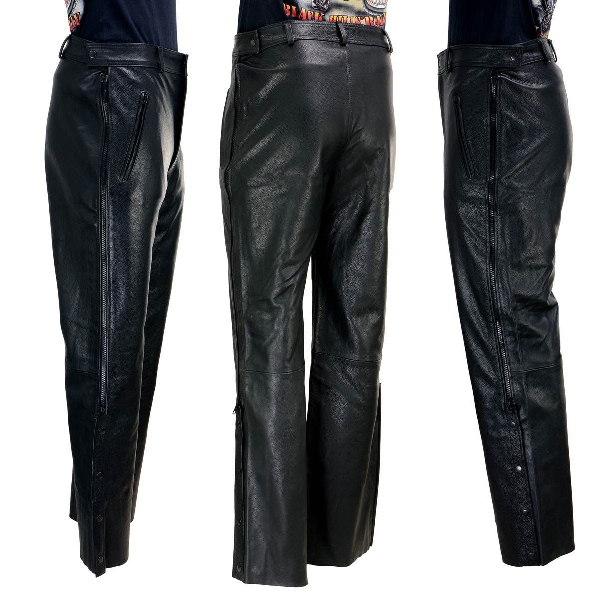 Milwaukee Leather LKM5727 Men’s Black Leather Motorcycle Over Pants with Side Zipper and Snaps