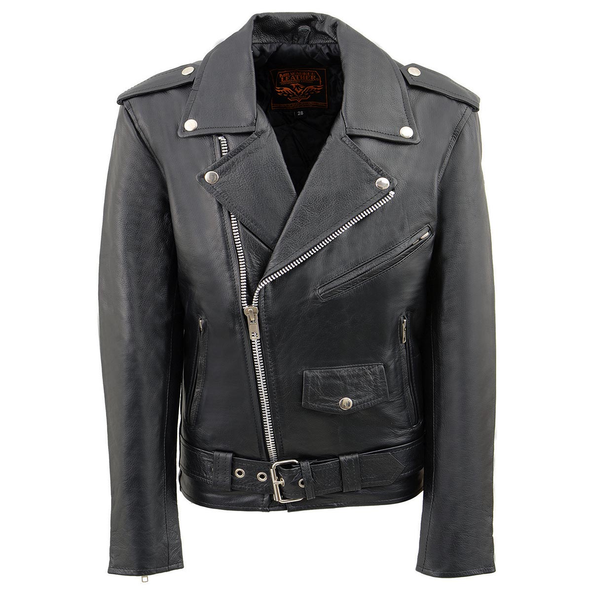Milwaukee Leather LKY1950 Youth Size Classic Style Black Police Biker Leather Jacket