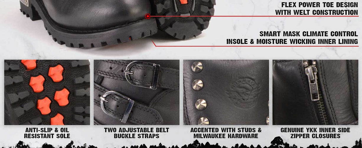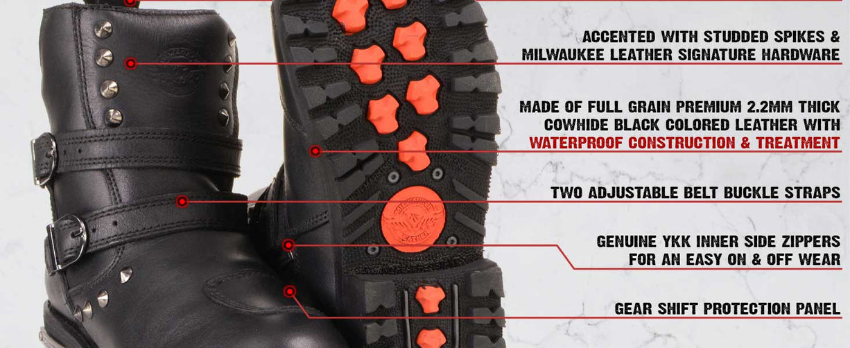 Milwaukee Leather MBL9423 Women's Black Studded Fashion Casual Boots with Studded Outsole