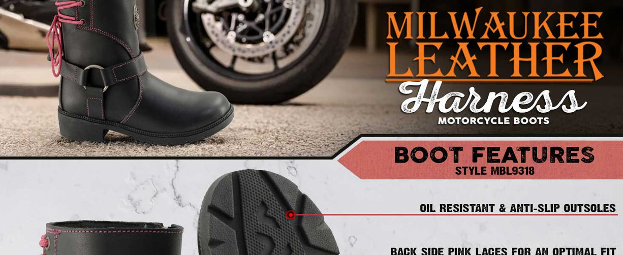 • Footwear Sizes | Our motorcycle boots for women are well-constructed and are offered in various sizes. Milwaukee Leather: Made for Riders, Built to Last!