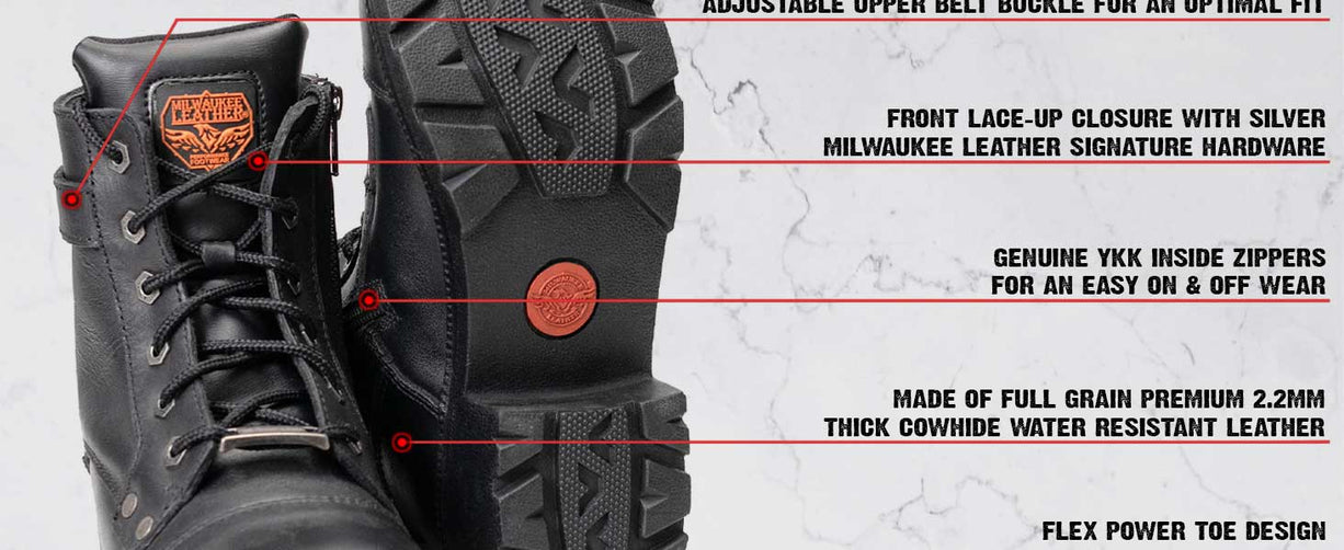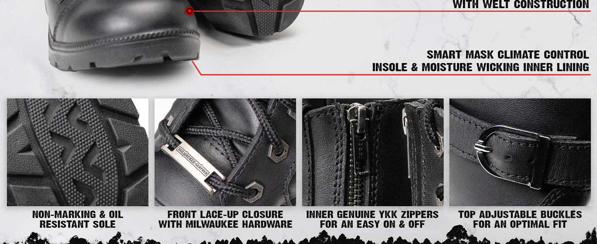 • Hardware |Our women's motorcycle boots feature the industry's best YKK zipper hardware. They are available in a wide range of sizes from 5 to 11, including half sizes. Milwaukee Leather - Once You Have It, You Love It.
