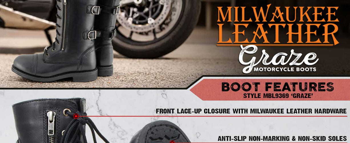 Milwaukee Leather MBL9423 Women's Black Studded Fashion Casual Boots with Studded Outsole