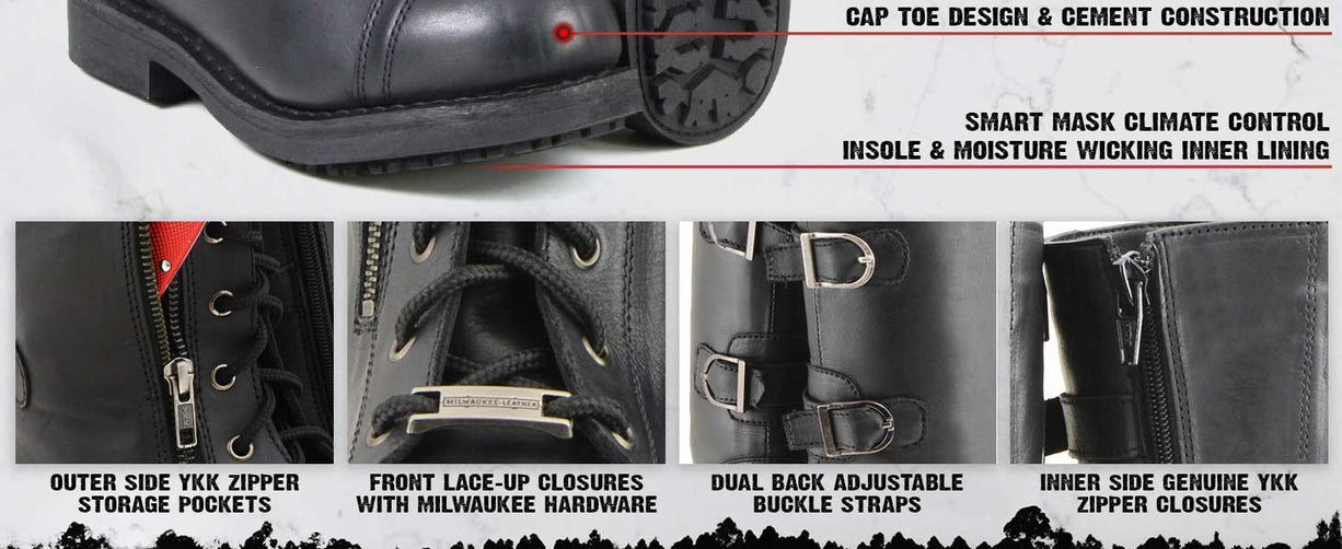 Milwaukee Leather Women's Black Triple Strap Fashion Boots with Platform Wedge MBL9437