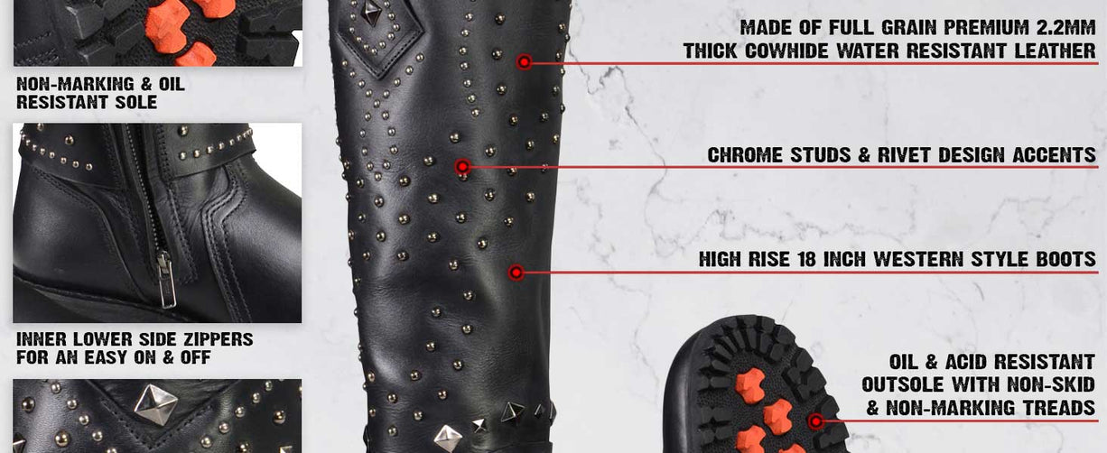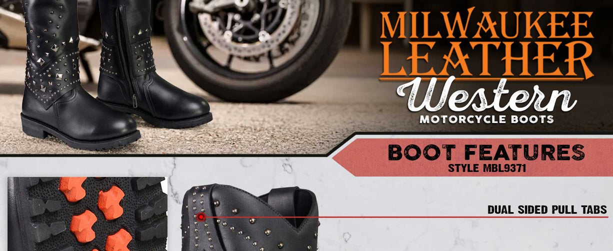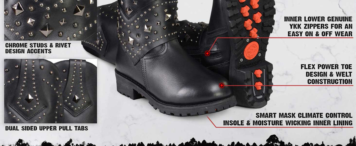 Milwaukee Leather MBL9423 Women's Black Studded Fashion Casual Boots with Studded Outsole