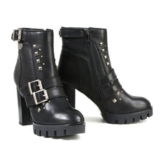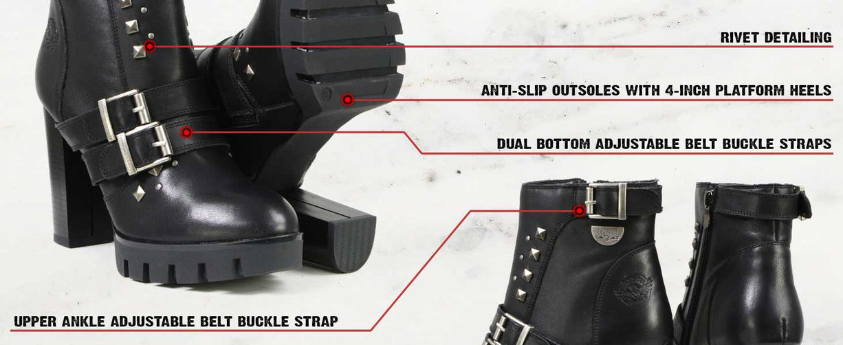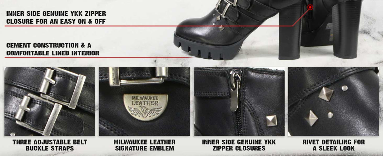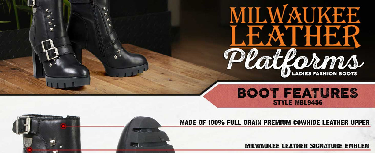 Milwaukee Leather MBL9456 Women's Premium Black Leather Fashion Platform Boots with Straps