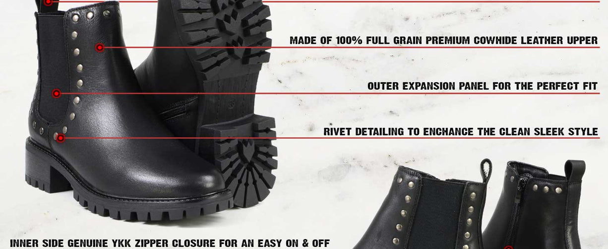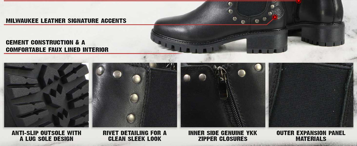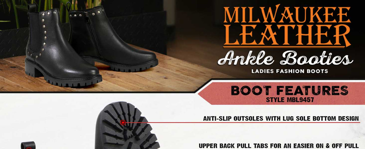 Milwaukee Leather MBL9423 Women's Black Studded Fashion Casual Boots with Studded Outsole
