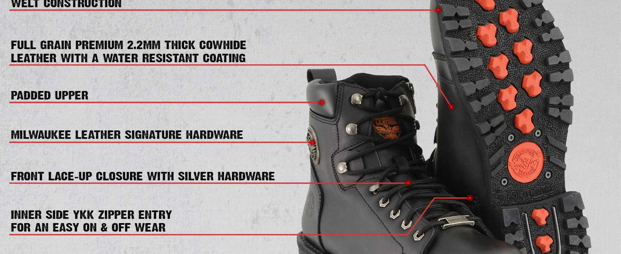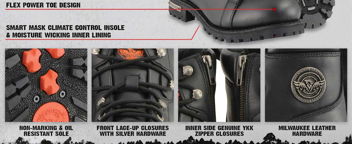 Milwaukee Leather MBM9076 Men’s Black Tactical Logger Leather Boots with Buckle Enhancement