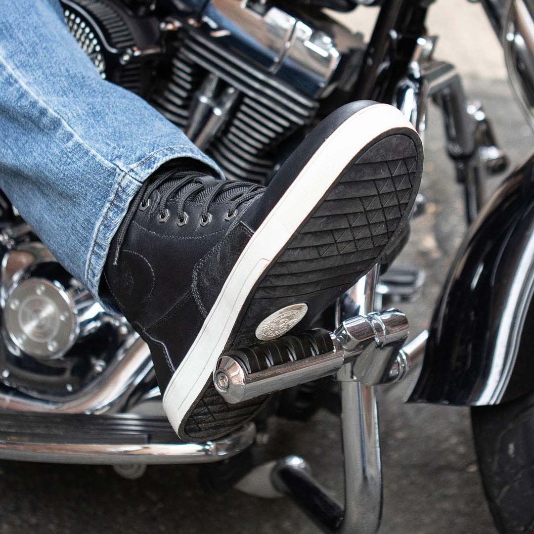 Excellent riding shoes, lite weight and durable leather. Low profile toe with a decent grip on the bottom. Best of all they are Milwaukee’s! I still wear my Milwaukee Engineer boots that I have owned for over 10 years.