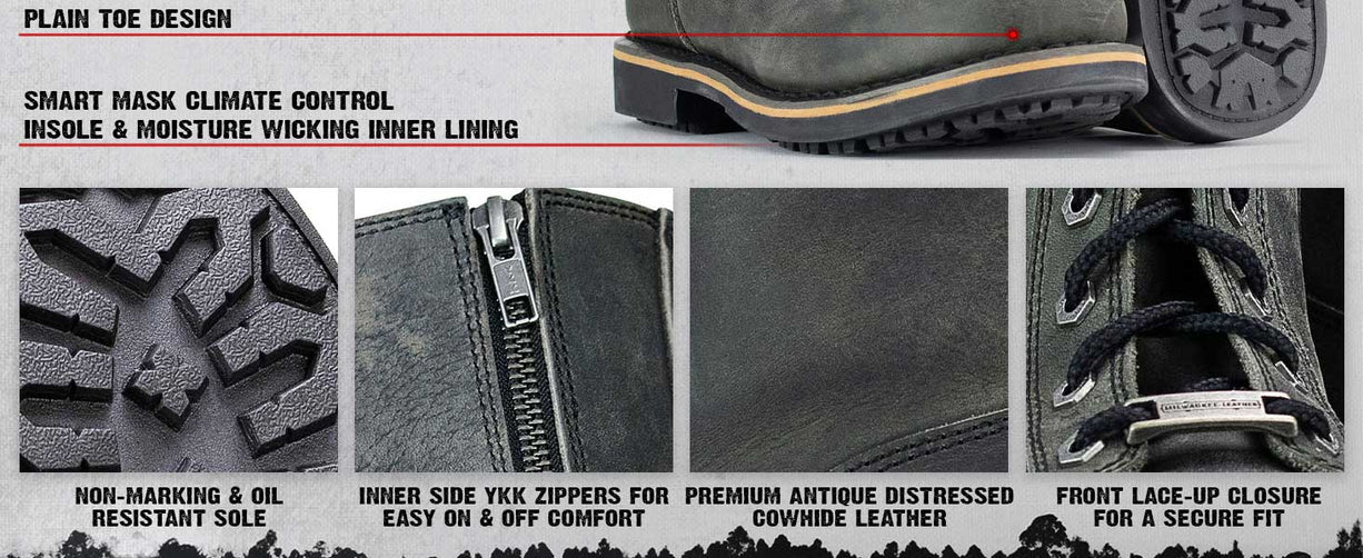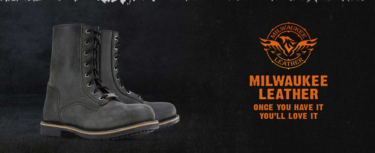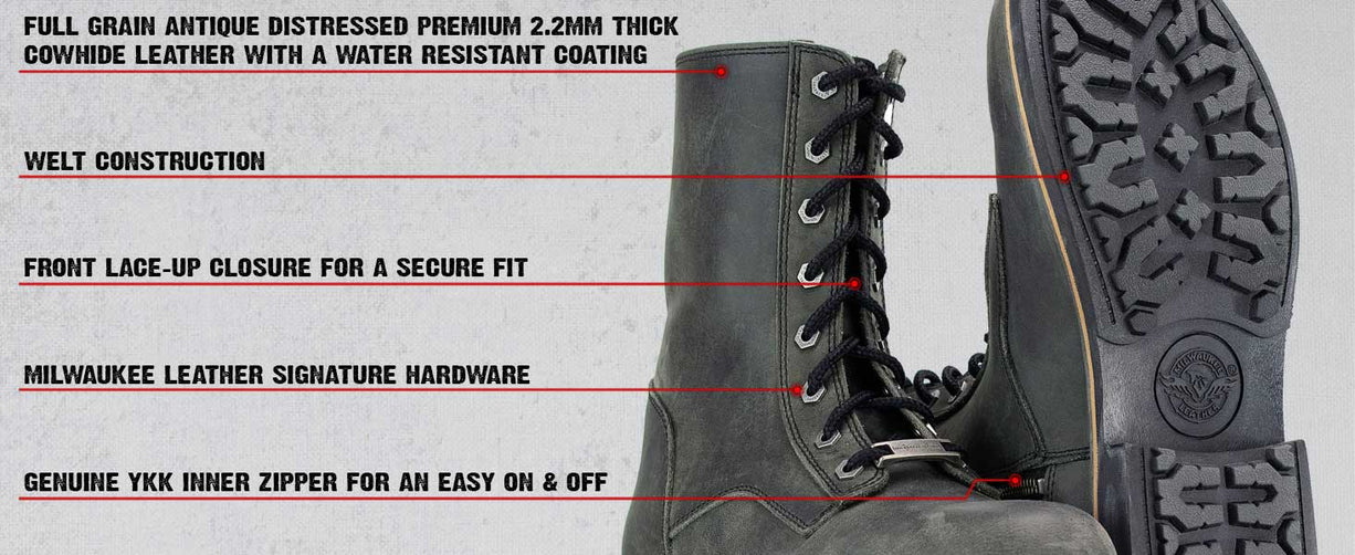 Milwaukee Leather MBM9065 Men's Antique Black Lace-Up High-Rise Boots