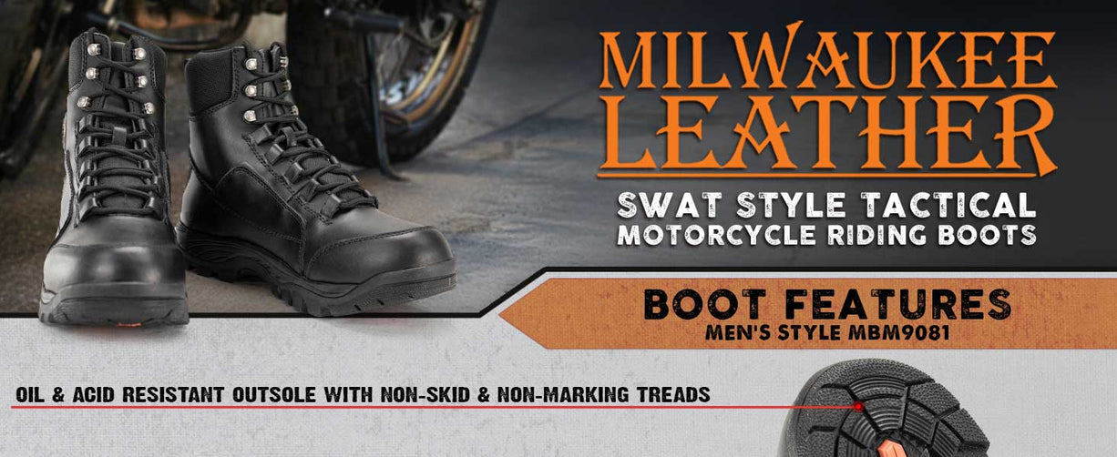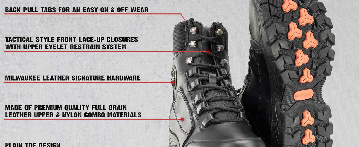 Milwaukee Leather MBM9076 Men’s Black Tactical Logger Leather Boots with Buckle Enhancement
