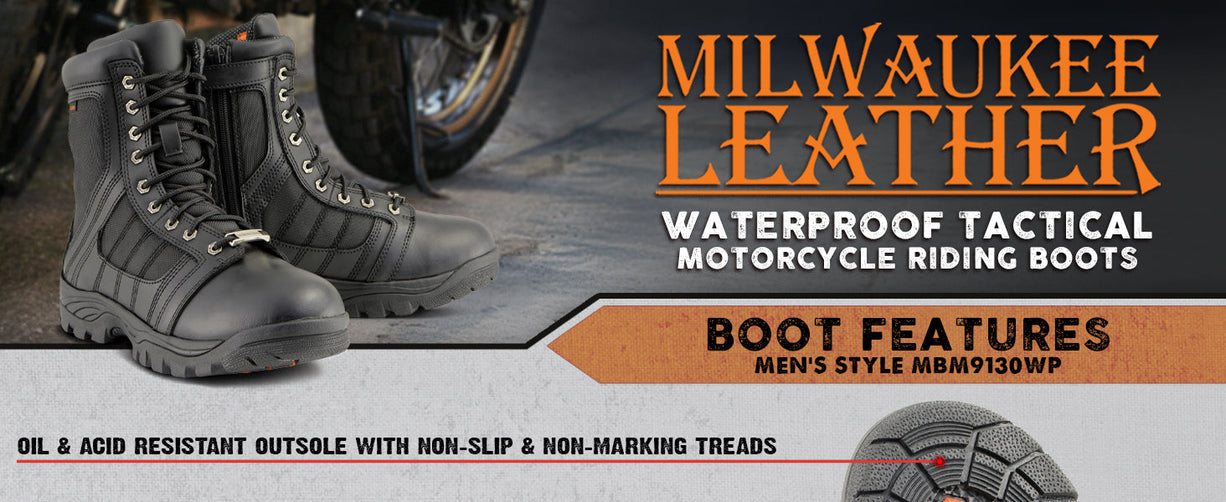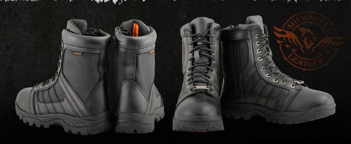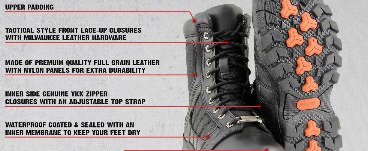 Milwaukee Leather MBM9076 Men’s Black Tactical Logger Leather Boots with Buckle Enhancement