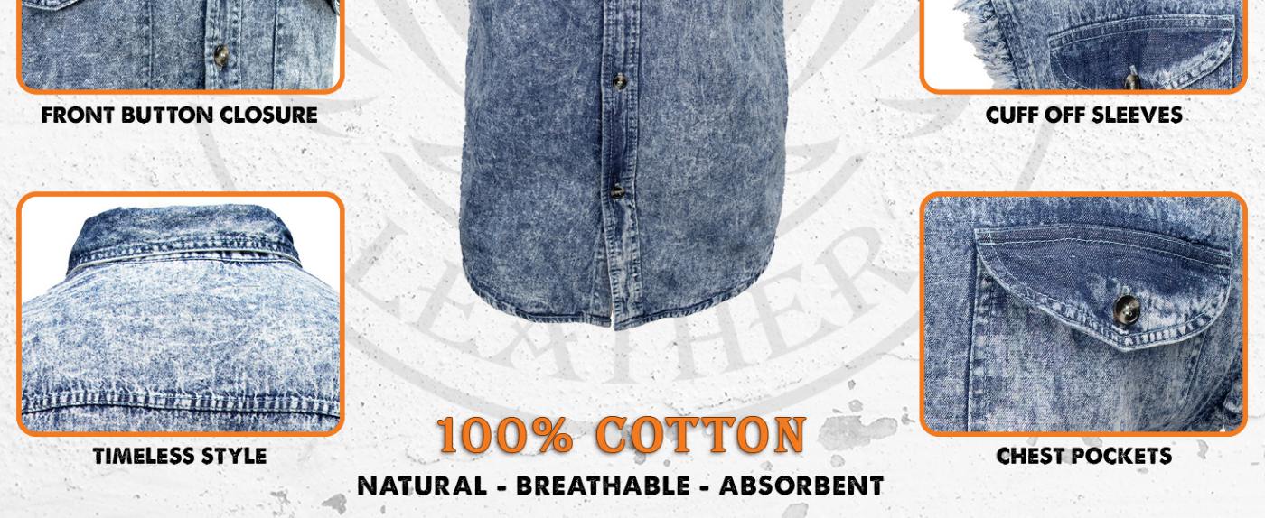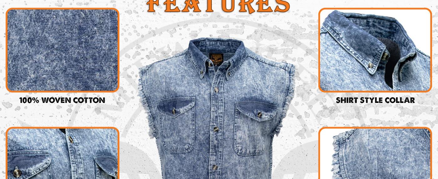 Milwaukee Leather DM4004 Men's Grey Lightweight Denim Shirt with Sleeveless Frayed Cut Off