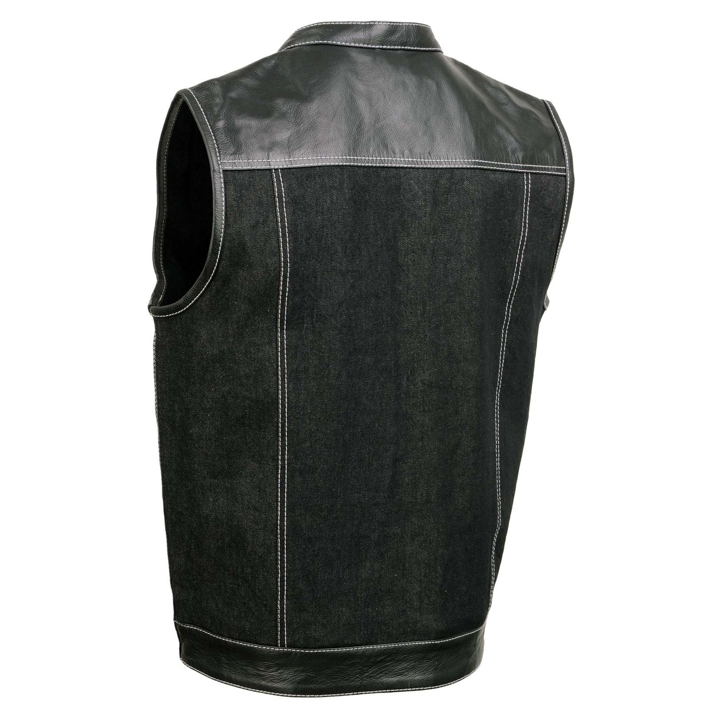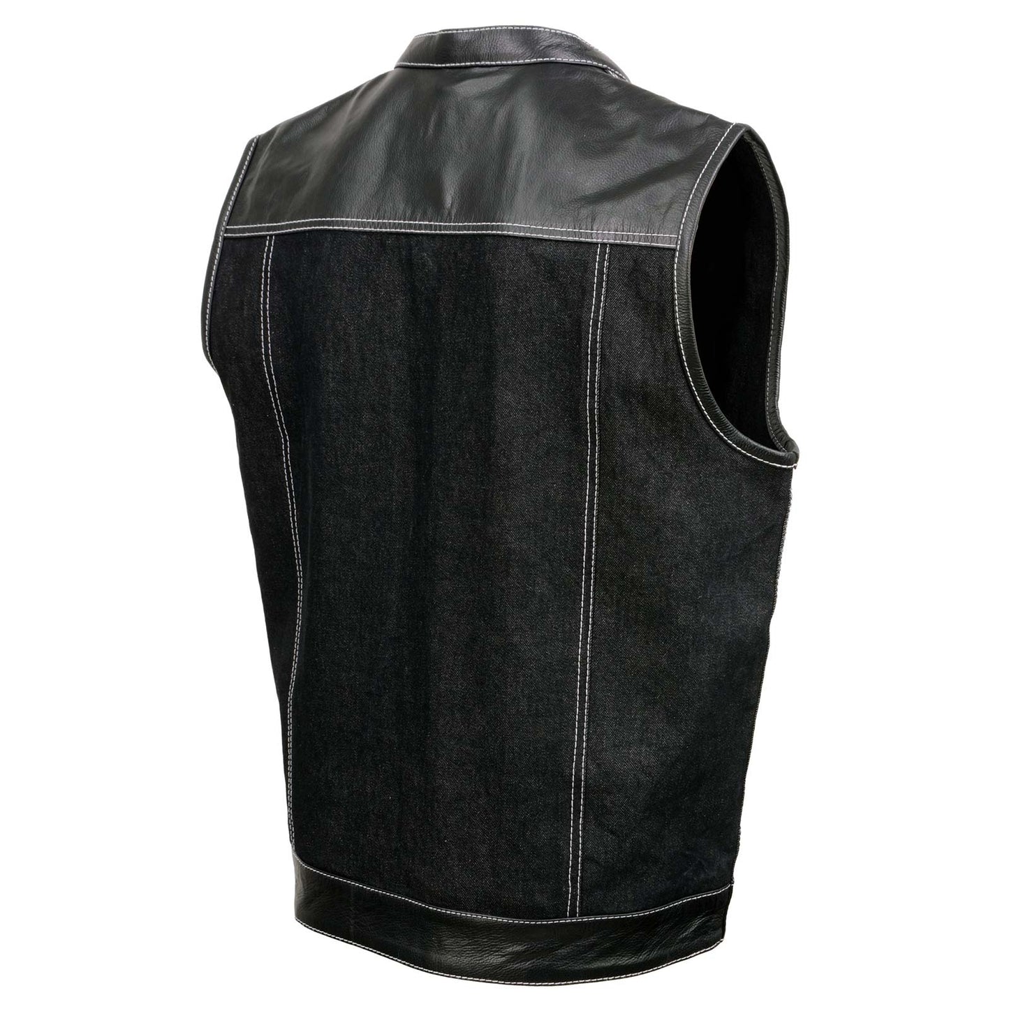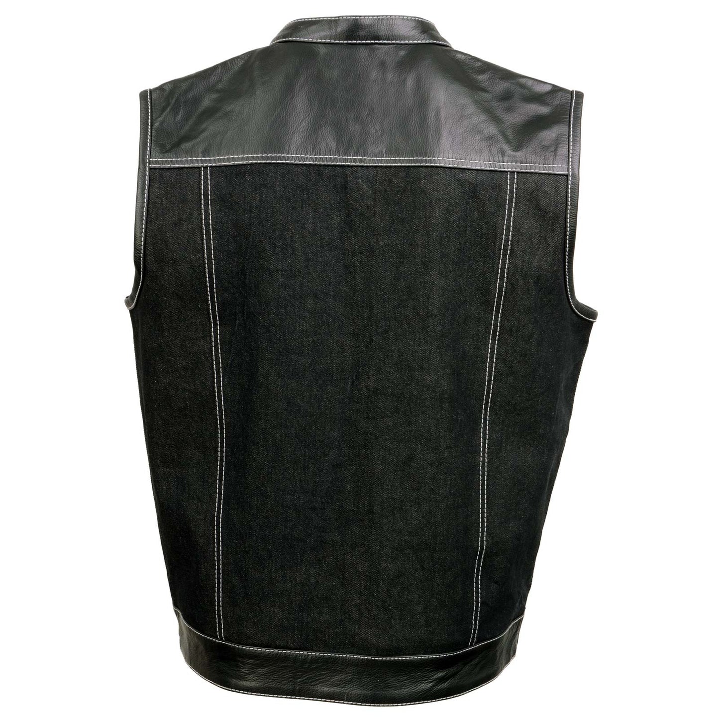 Milwaukee Leather DM1331 Men's Black Denim Motorcycle Biker Riders Vest w/ Shirt Style Collar