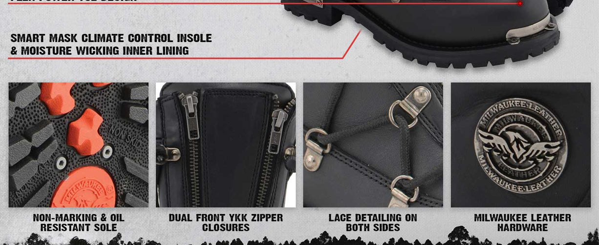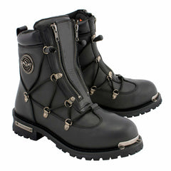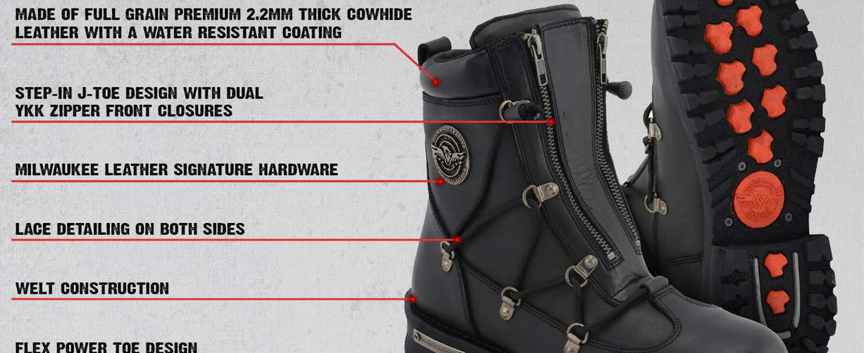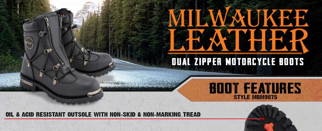 Milwaukee Leather MBM9075 Men's Black Leather 6-inch Plain Toe Dual Zipper Motorcycle Rider Boots