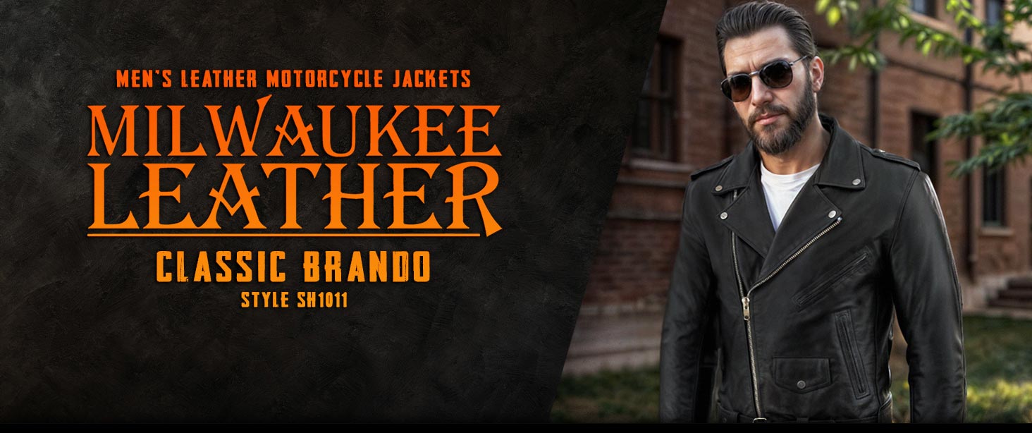 Milwaukee Leather SH1011 Men's Classic Brando Premium Leather Black Motorcycle Riders Leather Jacket w/ Side Laces
