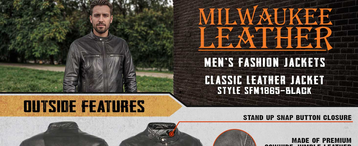Milwaukee Leather Vintage SFM1804 Men's Classic Black Zipper Front Jacket with Shirt Collar