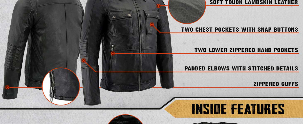 Milwaukee Leather SFM1875 Men's New Zealand Lambskin Leather with Shirt Style Collar