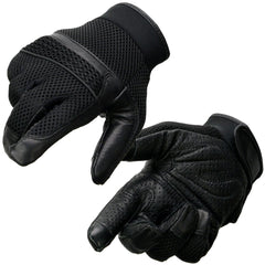 Milwaukee Leather MG7503 Men's Black Leather  i-Touch Screen Compatible Mesh Racing Motorcycle Hand Gloves W/ Reflector