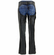 I love these chaps. They fit very well and I like the laces on the back of the legs. I like the reflective wings and they match well to the jacket I bought at the same time. They fit nice, but I was glad they came with the extension piece as I am a chubby girl and needed it. Can't wait for my bike to get out of the shop so I can use them.